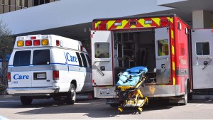Ambulances outside an emergency room in San Diego County. Photo by Chris Stone