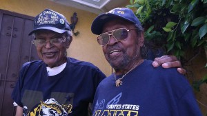 Friends-for-life Sammy Thomas (left) and Van Clemons are on the Honor Flight San Diego trip to Washington. Photo by Chris Stone