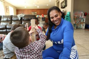 A child care worker in California; two new reports find that finding affordable child care is an increasing difficulty for families. Photo courtesy United Domestic Workers of America, AFSCME Local 3930