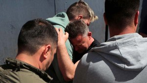 A Russian and a Ukrainian embrace each other as Russians wait for humanitarian visas, amid the ongoing Russia’s invasion of Ukraine, at the San Ysidro Port of Entry of the U.S.-Mexico border in Tijuana, Mexico, March 18, 2022. REUTERS/Jorge Duenes TPX IMAGES OF THE DAY