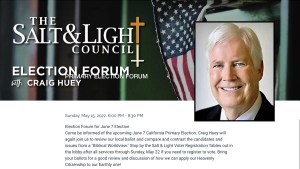 For at least the fifth time in recent years, El Cajon’s Foothills Christian Church is featuring conservative pundit Craig Huey at an election forum — this time in the sanctuary.