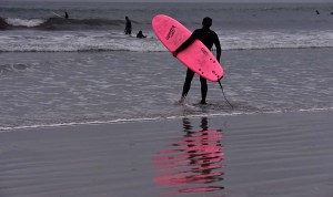 A surfer watches waves at La Jolla Shores beach. Photo by Chris StoneA surfer watches waves at La Jolla Shores beach. Photo by Chris Stone