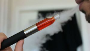 A person smoking flavored tobacco with a vaporizer pen. Photo by Lindsay Fox of ecigarettereviewed.com via Wikimedia Commons