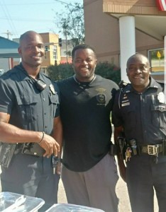 A member of the Mu Beta Phi Military Fraternity Inc. (center) with law enforcement at an event. Photo via https://www.mbphikings2017.org/