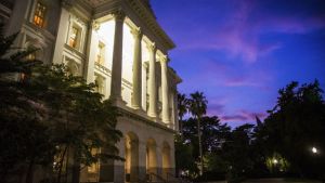 The state Capitol in Sacramento at night. Photo by Max Whittaker for CALmatters