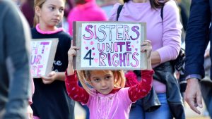 A young girl marches with her family at the San Diego Women’s March in downtown San Diego in 2018. Photo by Chris Stone