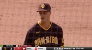 Taylor Rogers of the Padres. Photo credit: Screen shot, @BallySportsSD
