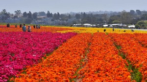 The north end of the flower fields has begun to bloom. Photo by Chris StoneThe north end of the Flower Fields, now in full bloom in Carlsbad. Photo by Chris Stone