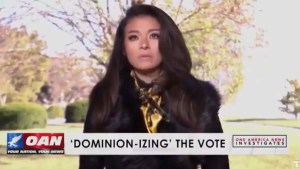 Washington-based OAN correspondent Chanel Rion is a defendant in the Colorado case and the Dominion lawsuit. Image via YouTube.com