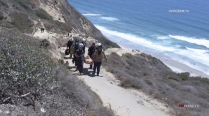 Crews return an injured man up a trail at Torrey Pines State Beach Sunday. Photo credit: OnScene.TV
