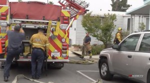 Firefighters wrap up Thursday after putting out a fire near a Linda Vista mobile home park. Photo credit: OnScene.TV