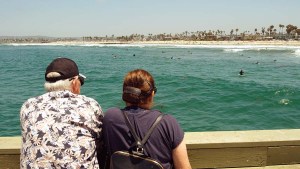 People enjoyed watching the waves and surfers from the newly reopened Ocean Beach Pier. Photo by Chris StonePeople enjoyed watching the waves and surfers at Ocean Beach Pier. Photo by Chris Stone